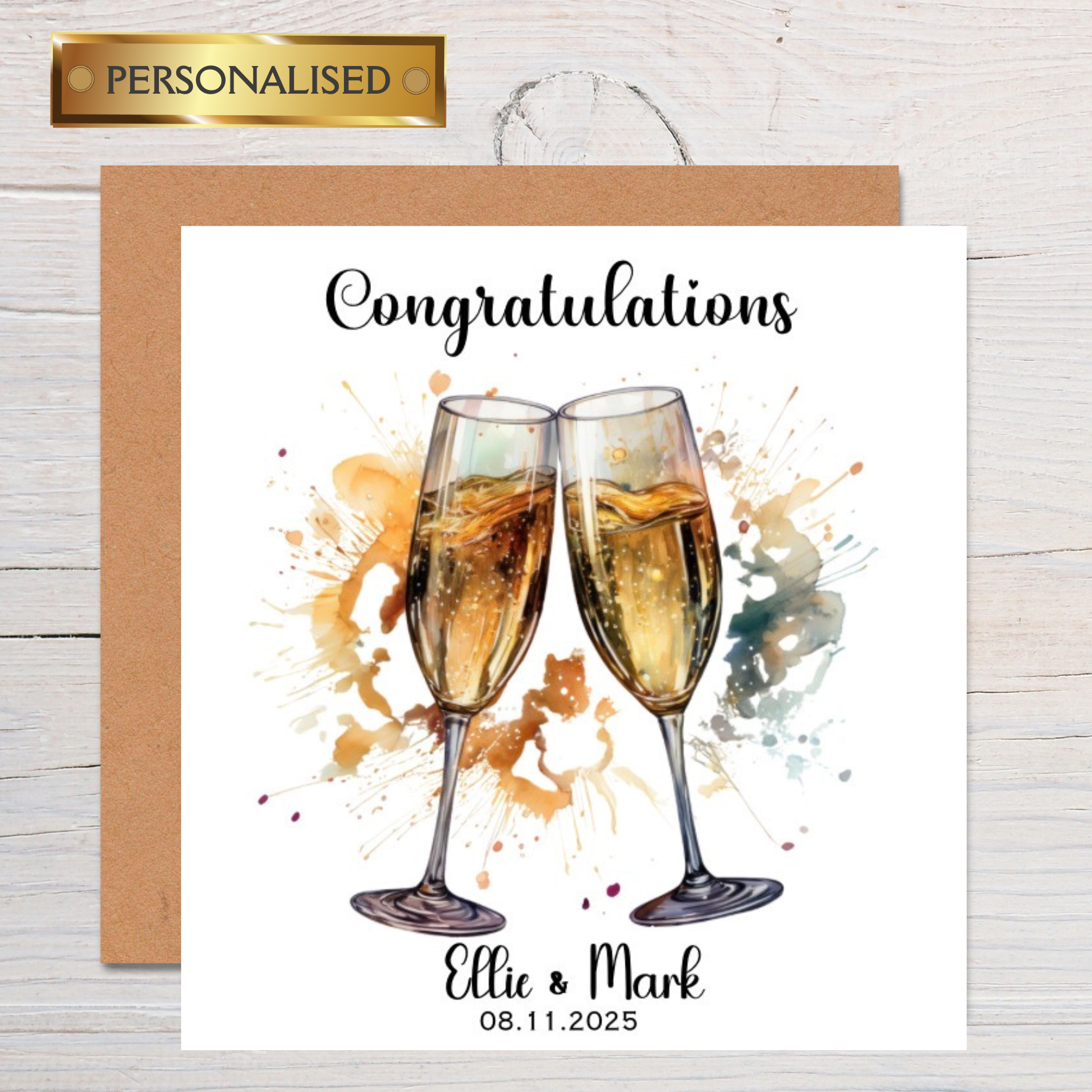 Personalised Congratulations Card – Champagne Glasses Celebration – Wedding, Engagement, New Job, Graduation Card